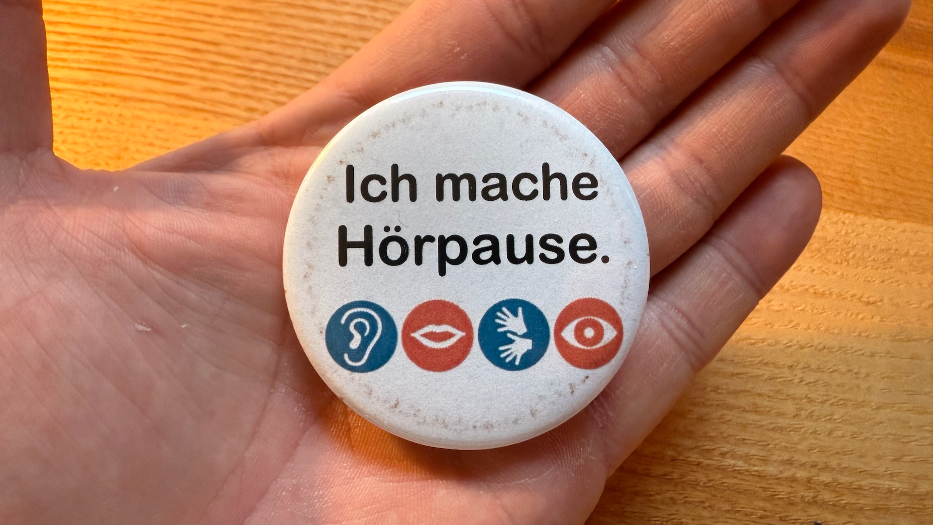- Als Button zum Anstecken, damit Kolleg:innen wissen: Ich brauche kurz Stille.