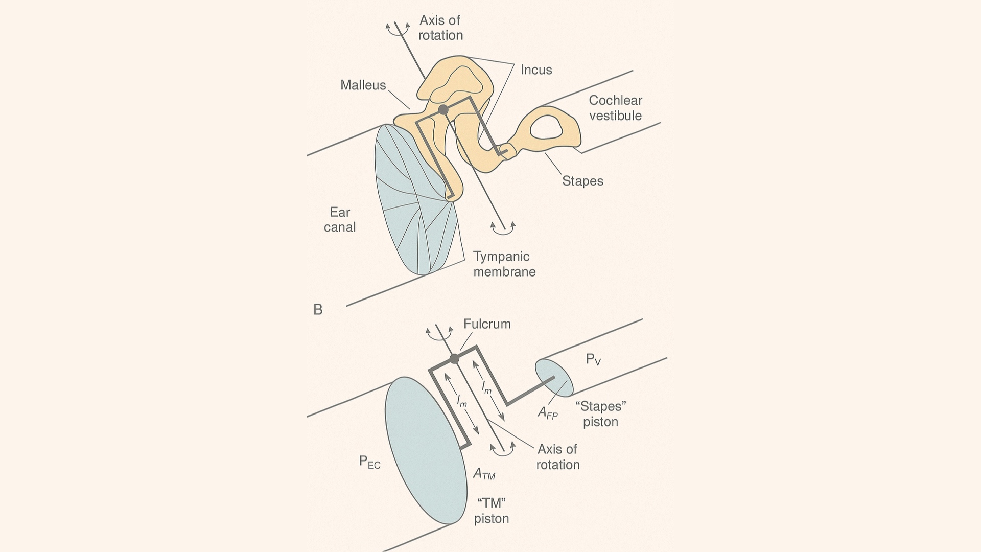 Trifft Schall auf das Trommelfell, werden Hammer, Amboss und Steigbügel in Bewegung gesetzt. Sie wirken wie ein Verstärker, der Luftschwingungen in die flüssigkeitsgefüllte Cochlea überträgt. Zwei physikalische Prinzipien sind entscheidend: